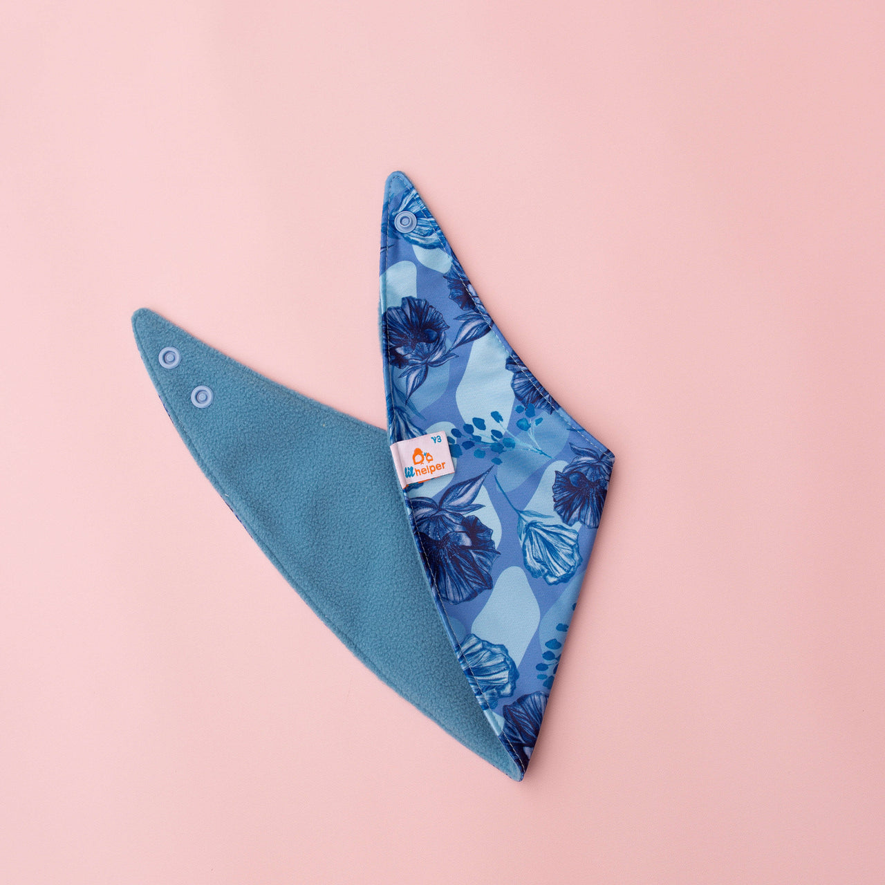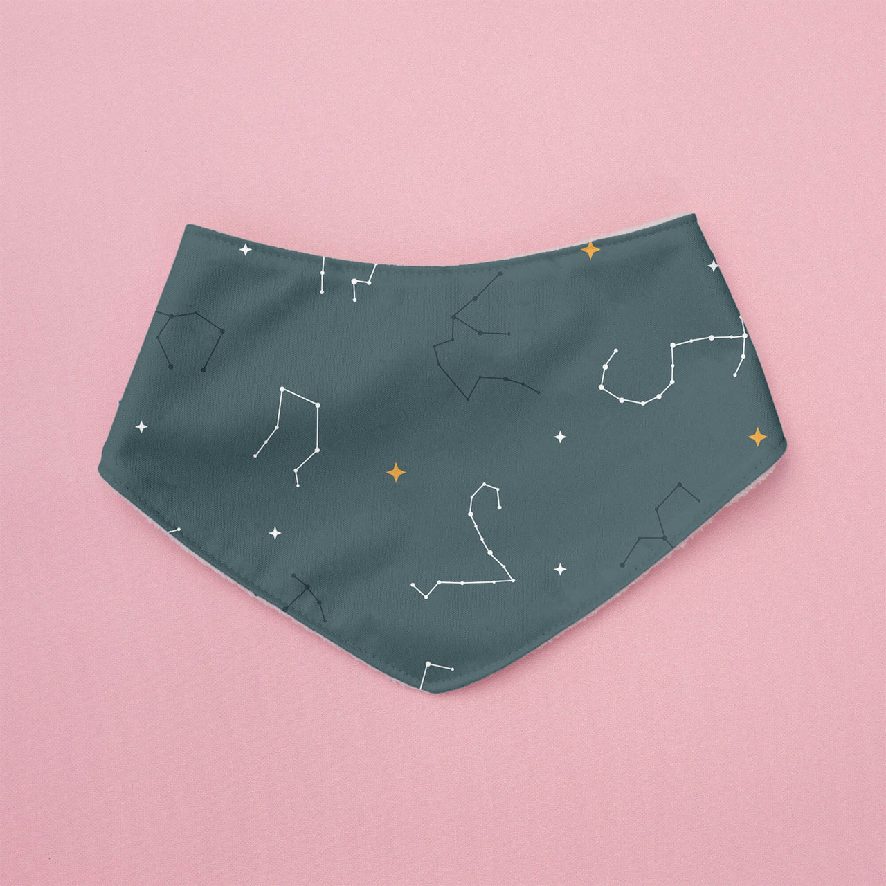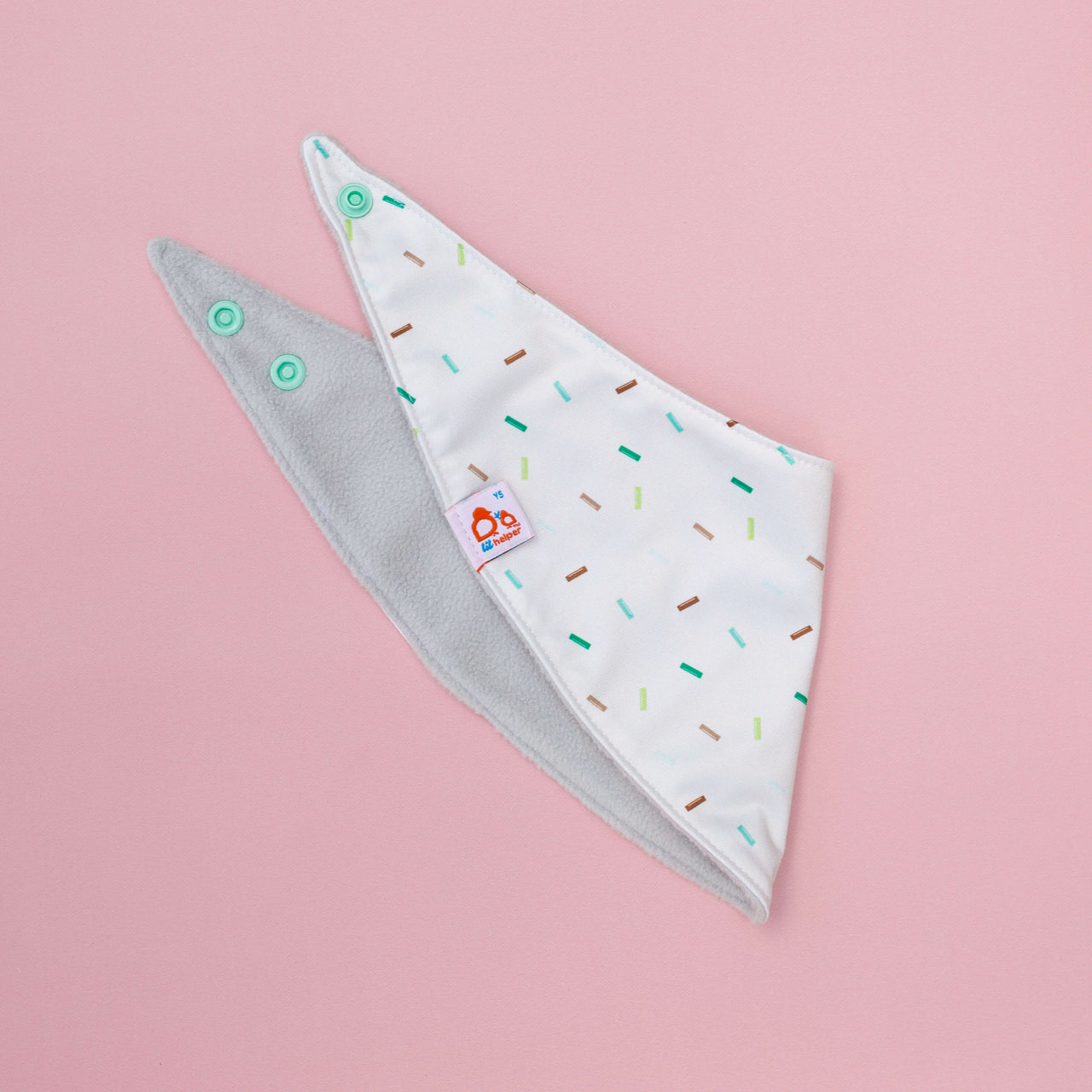 Soft fleece on one side for drool, waterproof PUL on the other for messes. Flip it, wipe it, repeat—two bibs in one stylish package.