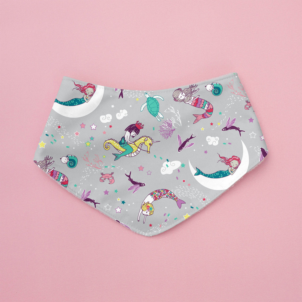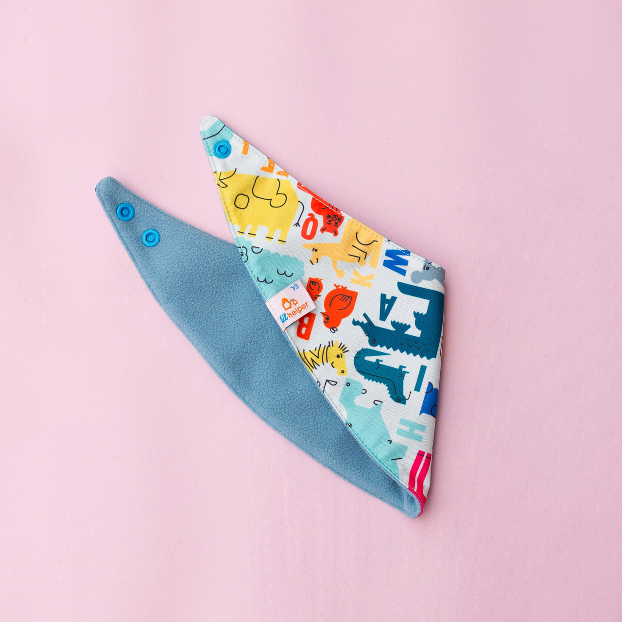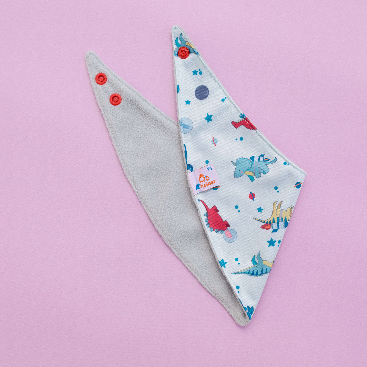Soft fleece on one side for drool, waterproof PUL on the other for messes. Flip it, wipe it, repeat—two bibs in one stylish package.