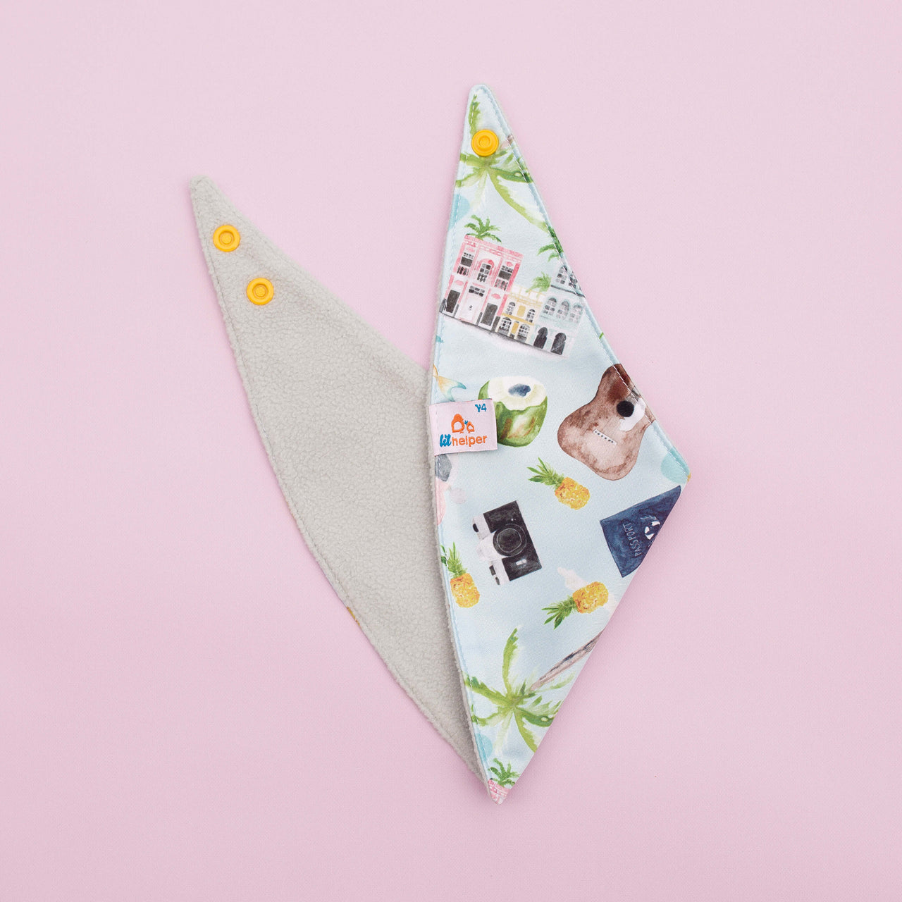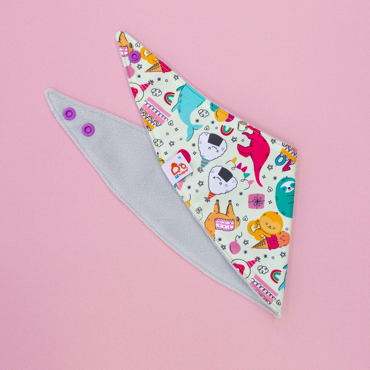 The Reversible Bandana Bib is designed for ultimate functionality. One side features soft fleece for absorbency, while the other is made from PUL for easy wipe-downs. It comes with adjustable snaps to grow with your baby and is safe for teething. Ideal for both babies and pets, this bib ensures dryness and convenience. Double the functionality, double the cuteness!