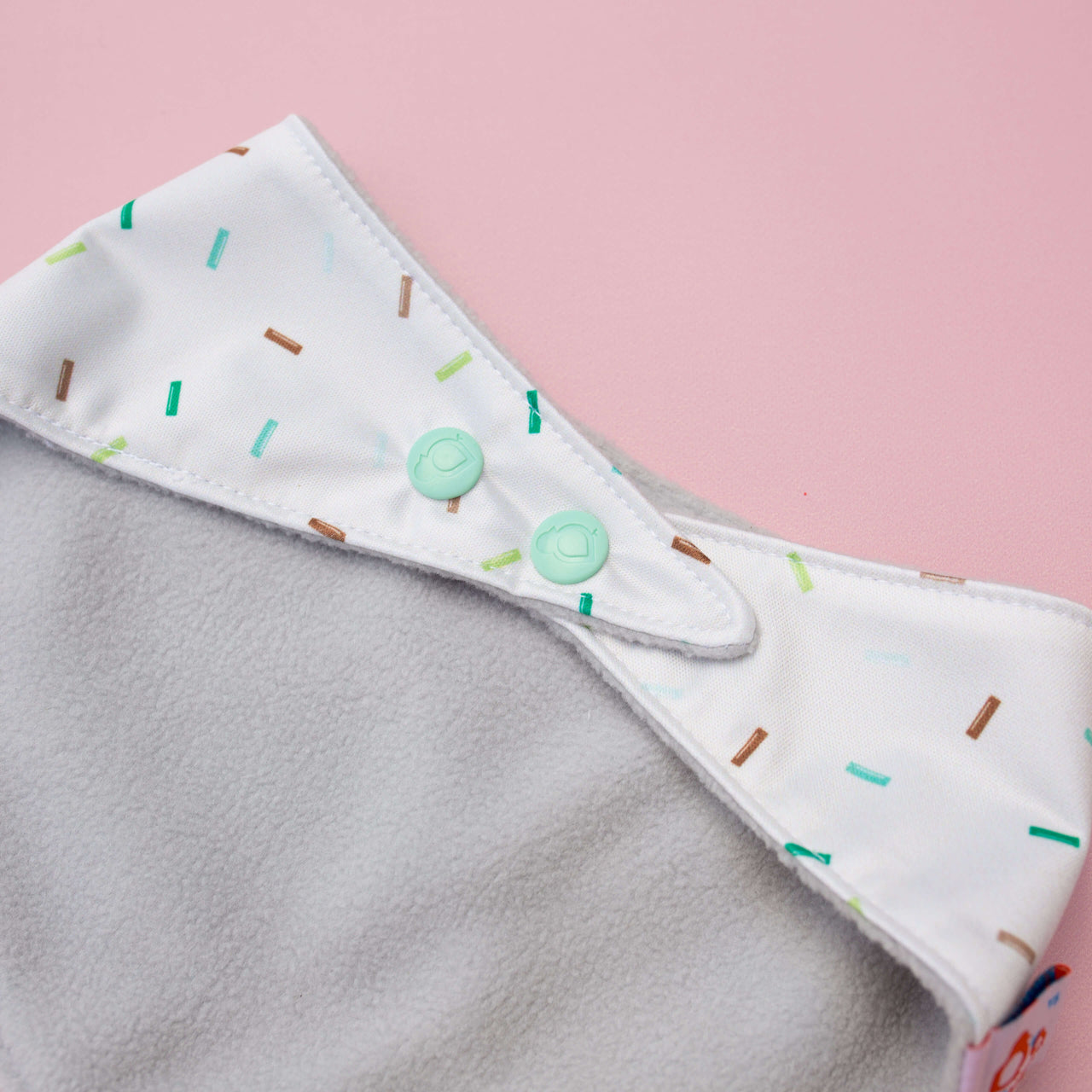Just flip it! Both sides are fully functional — fleece side for drool absorption, PUL side for easy wipe-downs. It’s like having two bibs in one.